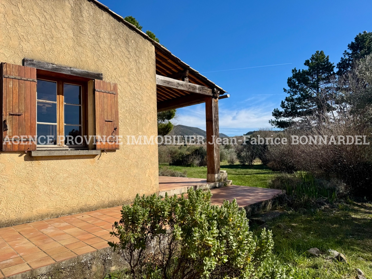Charmante Villa Provençale de pl-pied construite en 1980 aux abords du village (sans être isolée). Exposée plein sud, offrant 105 m² habitables ( 3 chambres) et un garage 26 m² environ 3000m² de terrain arboré et fleuri, magnifique vue dégagée Des travaux de rénovation sont à prévoir. Un bien rare pour les amoureux de nature et de tranquillité