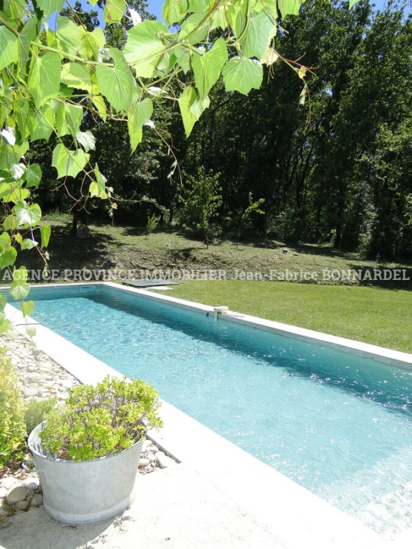 Aux abords d'un pittoresque village proche Grignan élégante maison de style bastide construite en 2011 surface habitable 102 m², intérieur sobre et chaleureux Au RDC Salon et Cuisine séparée À l’étage, les 3 chambres climatisées, Salle d'Eau et WC terrain arboré de 2 650 m² en lisière de forêt avec piscine en béton de 7 x 5 m À l’extérieur, un auvent et un garage de 20 m² secteur résidentiel aéré, A découvrir sans tarder